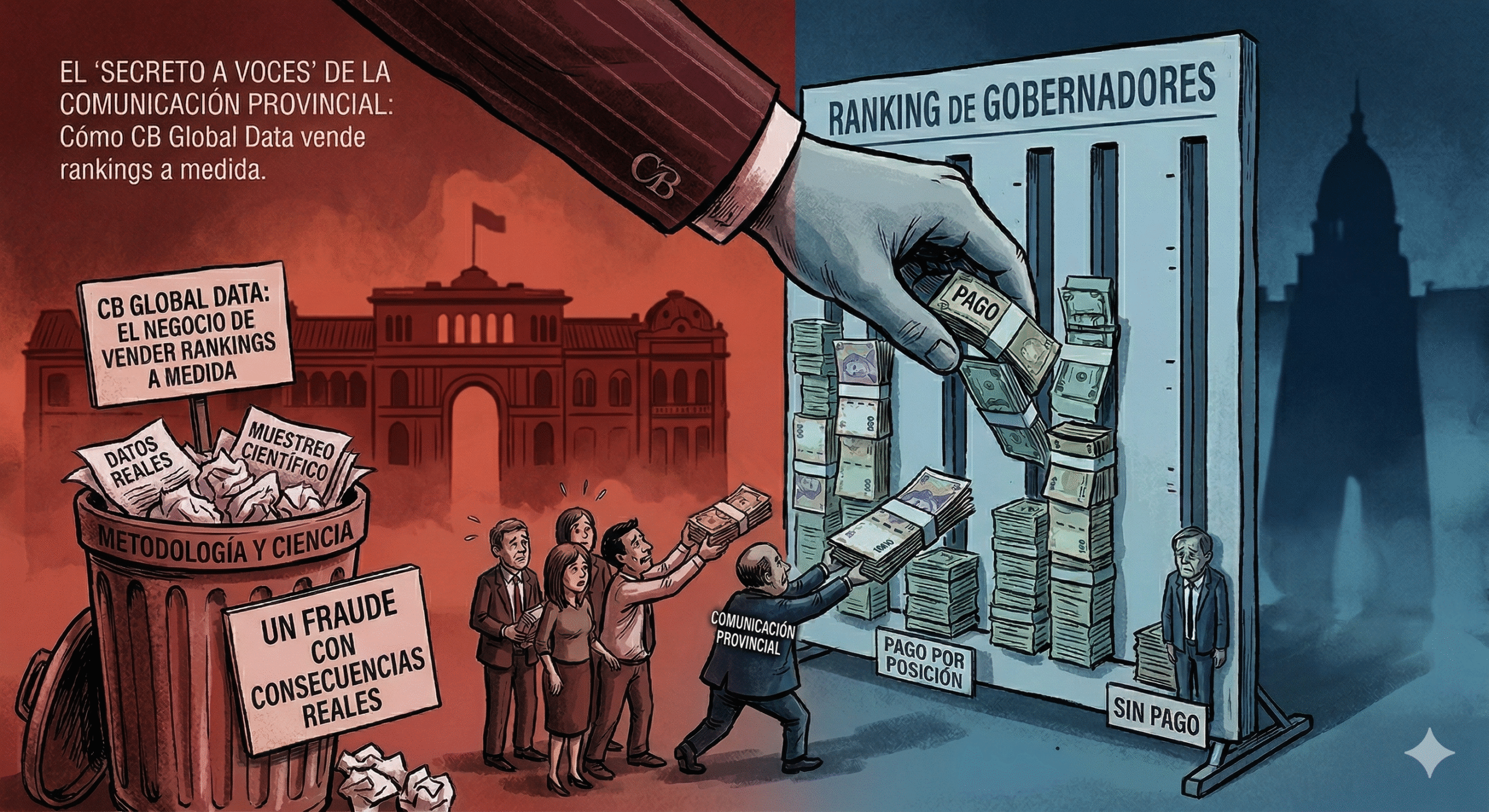 Sin metodología visible, sin sustento científico y con un patrón que la Justicia debería investigar¿Qué hay detrás de los rankings de CB Global Data? Cada vez más voces en el ámbito de la consultoría política señalan un patrón inq...